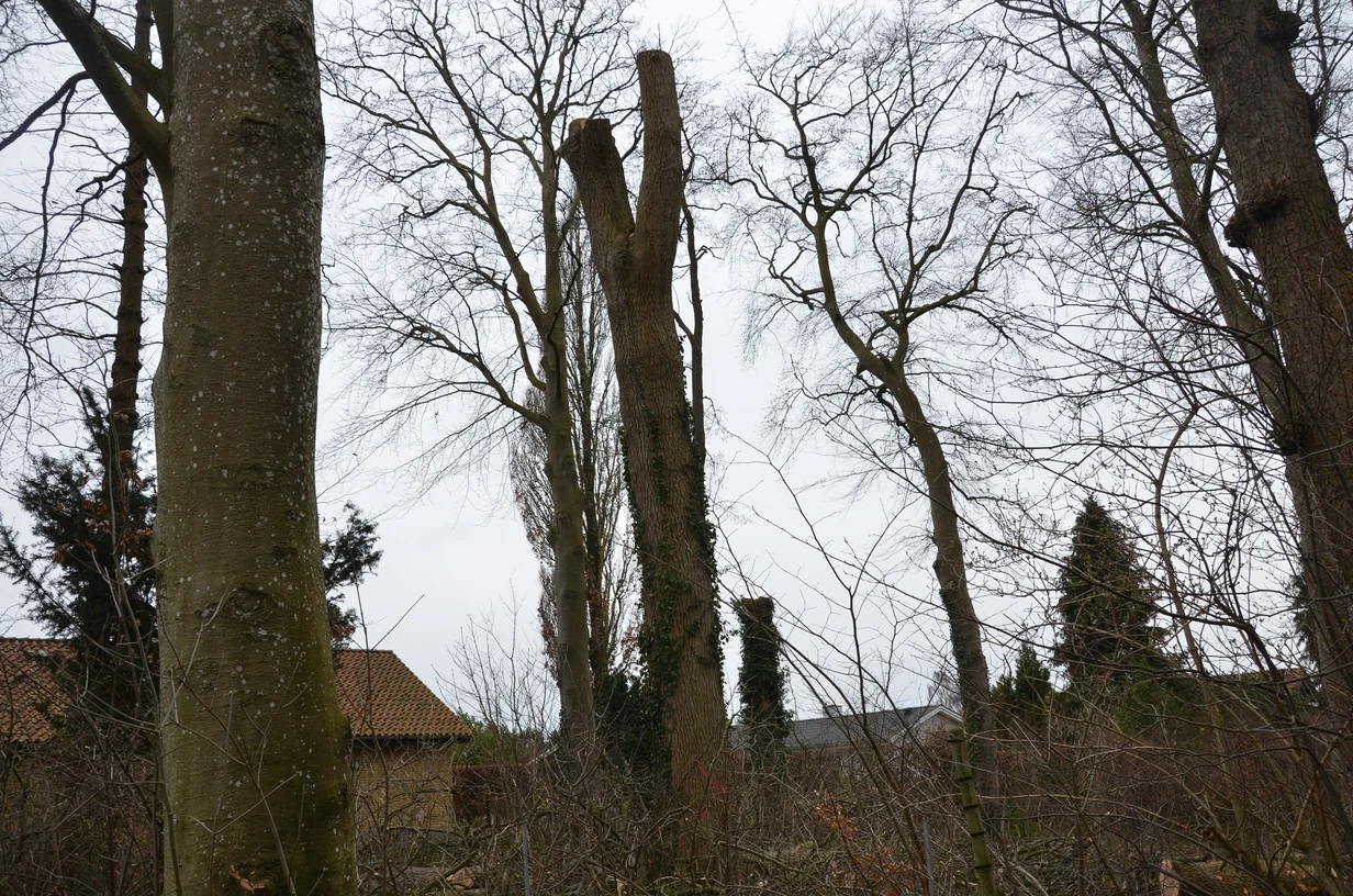 Et af årets mere specielle projekter var, en opgave i et villakvarter med mindre fredsskove i baghaven. Her blev jeg bedt om en vurdering af en vindfældet større ask. Vurderingen viste sig at være startskuddet på et større projekt, da det blev konstateret, at fire naboer havde mange meget gamle asketræer, der enten var gået ud eller viste tegn på askesyge, herunder tørre grene i toppen og honningsvamp i roden. Som følge heraf skulle i alt 18 asketræer, ca. 130 år gamle, fældes for at sikre, at de ikke kunne forårsage skade på bygninger eller mennesker. En del af askene blev topkappet, da der ikke var plads til at lægge dem ned og i den forbindelse lavede vi en del højstubbe til gavn for biodiversitet.